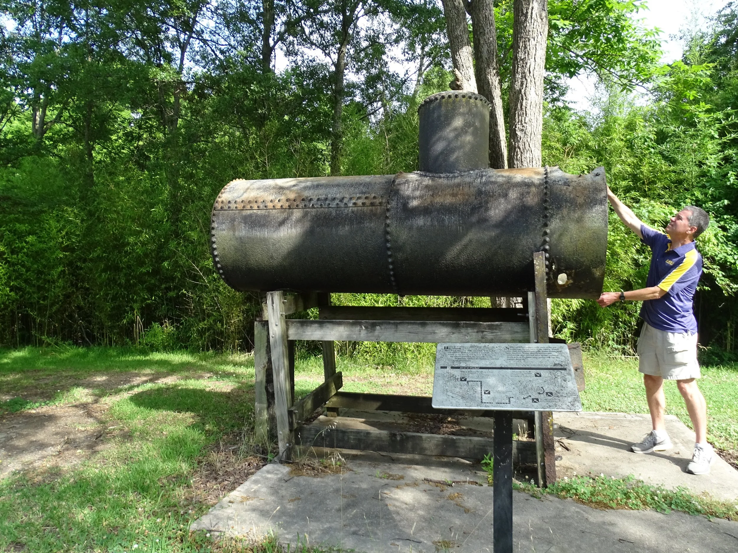 Doug inspects an old boiler that had been part of a sawmill at Lake Chicot.