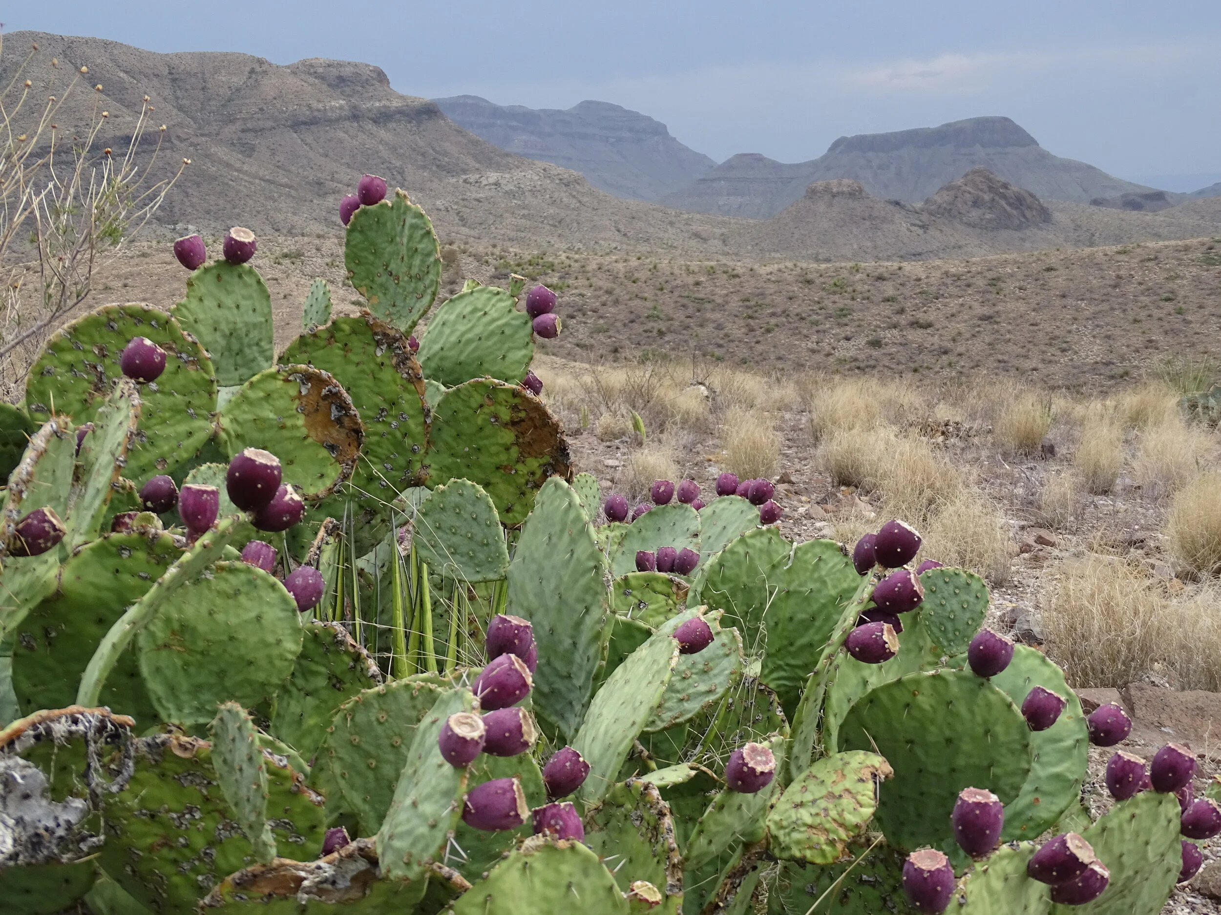 Rock formations and prickly pear cactus enhance the beauty of Big Bend.